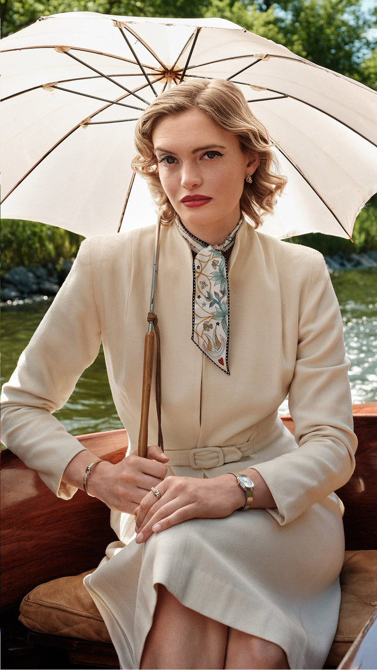 The Garbo 24 Stockholm takes its inspiration from the Art Deco movement that flourished during Greta's rise to fame. The silver sunray dial recalls the radiant geometry often seen in 1920s design. Gold Roman numerals provide balance and symmetry, while the two-tone palette reflects the period’s fascination with contrast. Greta Garbo’s authentic autograph, placed with subtle precision, completes the piece as both a decorative element and a lasting tribute.