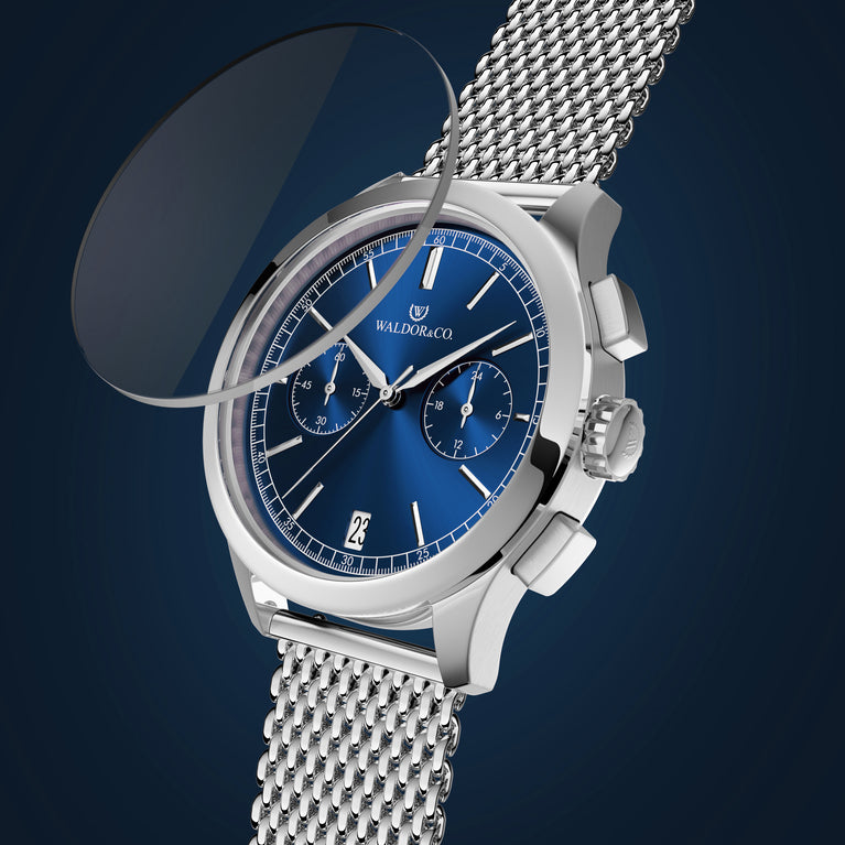 Enhanced with a sapphire crystal glass, renowned for its exceptional hardness, the Chrono 39 Sardinia is highly resistant to scratches and abrasions. The clarity of sapphire crystal is unparalleled, offering an unobstructed and crystal-clear view of the dial. Additionally, its low reflectivity enhances legibility in various lighting conditions, a crucial aspect for any timepiece.