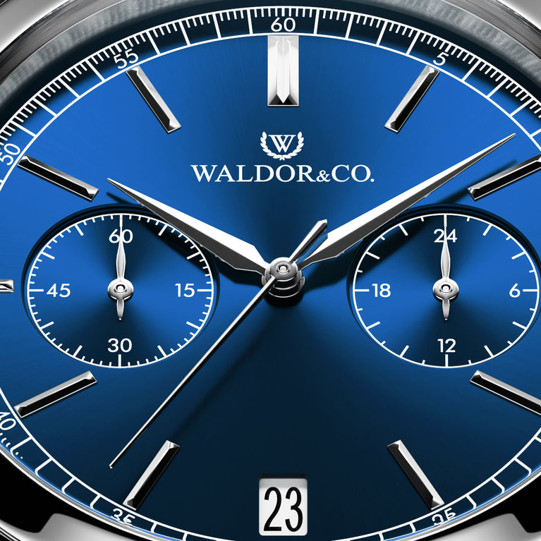 The striking blue dial of the Chrono 39 Sardinia is reminiscent of the crystal-clear waters of Sardinia, a nod to the exclusive and serene spirit of the Mediterranean. This particular blue is vibrant yet deep nuance, designed to catch and play with the light in a way that mimics the sun's reflections off the ocean's surface.