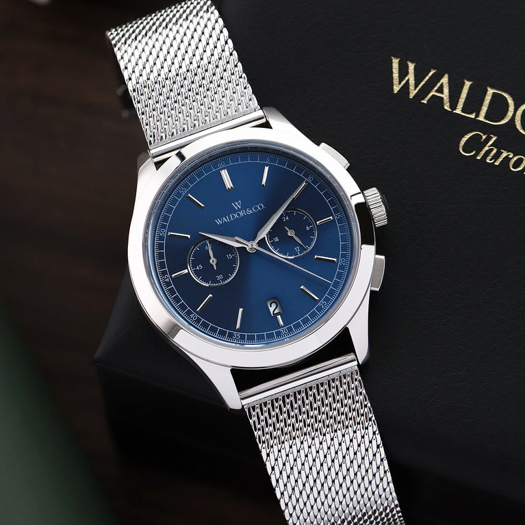 Dial: Blue sunray dial in brass