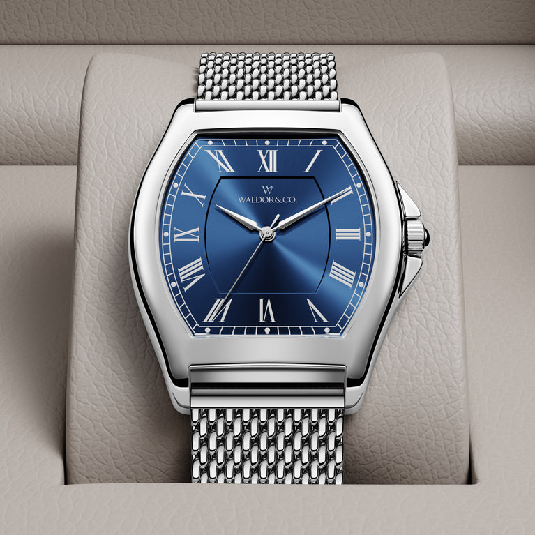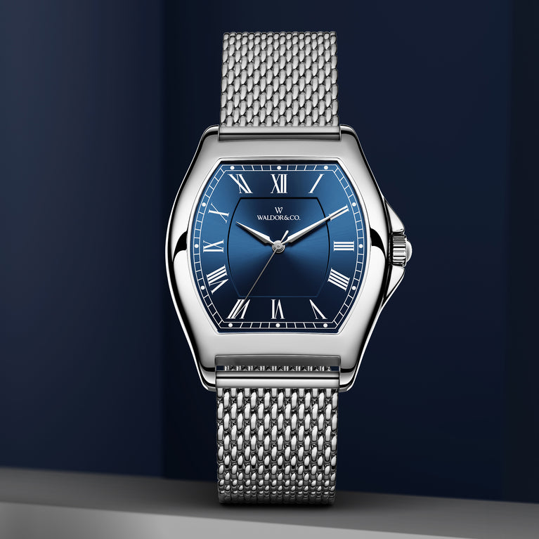 Strap: Mesh strap in rhodium-plated 316L stainless steel